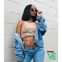 This soft fur like top has a zipper back and a halter neck tie. Long straps allow you to tie it across the belly multiple times. Super cute and comfy 90s vibes