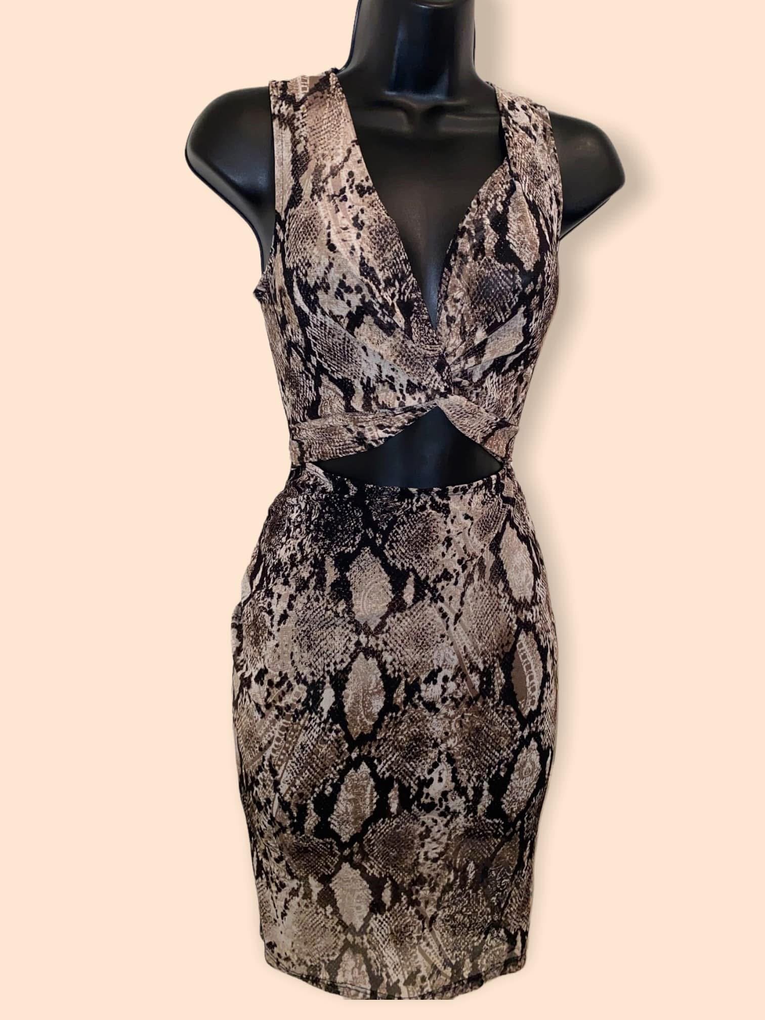 Mesh Bodycon Dress with snake print design.