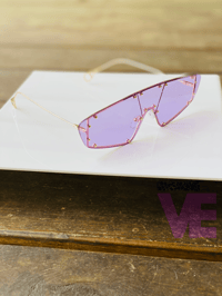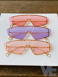 Unisex Rimless Frames with Gold Detail. Available in 6 Options: Dark Pink, Purple, Light Pink, Tan, Yellow & Black